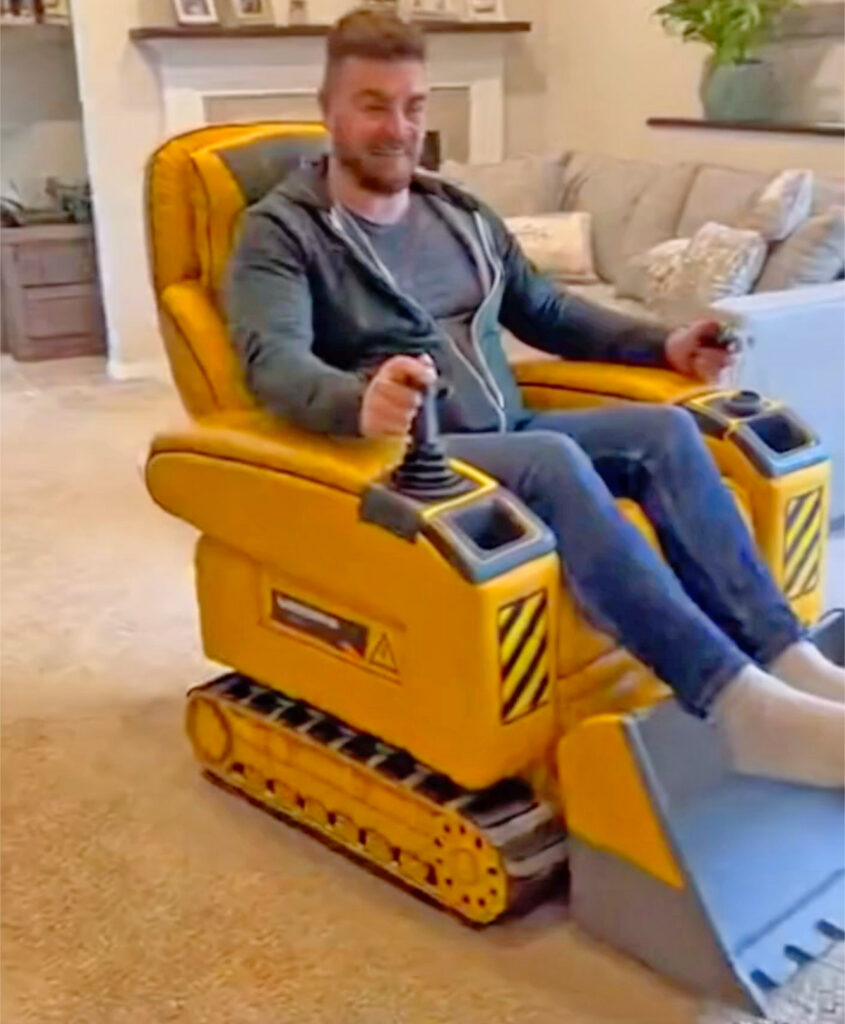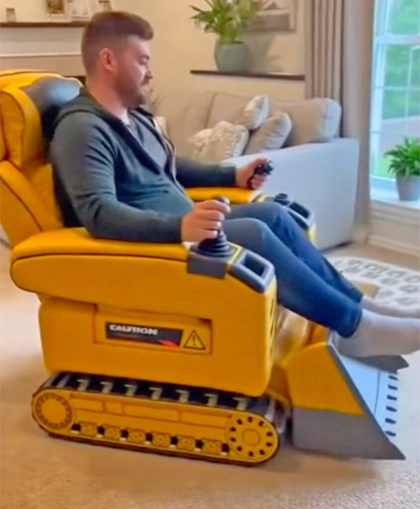 Breaking News from the living room job site! A new breed of lounge furniture has emerged, and it’s ready to shovel your snacks, roll across your carpet, and recline you into a throne of construction glory. We’re talking about what designers are calling heavy equipment recliners, which are motorized chairs that look like mini job-site machines and act like premium theater seats.