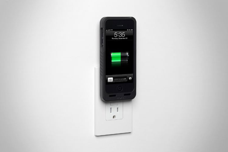 Why go through all the trouble to charge your phone via cord by sifting through your cord drawer, attempting to untangle it from the other 400 cords in that drawer, trying to plug the USB cord in to your phone but it’s backwards so you flip it over only to realize you had it right the first time. The PocketPlug lets you charge your phone by directly inserting it into a wall outlet, and when not charging the charging prongs can fold back into the case so they’re not in the way. The PocketPlug wall charge iPhone case also enhances the audio from your phone by redirecting it to the front of the phone, features quick charging technology that lets you charge your phone within minutes, and even lets you charge via USB cord if you really need to by plugging it into the side of the case. The PocketPlug is compatible with the iPhone 5 and 5s models, made for Type B American 3-pin AC electrical outlets, is made from high grade polycarbonate with a soft touch rubber finish, and includes a headphone adapter to access the audio port on the iPhone. Check out the Prong Pocket Plug in action via the video below.